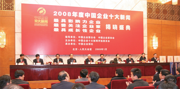2009年1月,北京人民大會堂,2008年度中國企業(yè)十大新聞發(fā)布活動隆重舉辦。