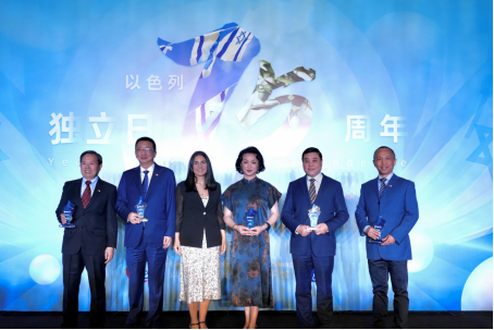 活動現(xiàn)場,上海兒童醫(yī)學(xué)中心SDR手術(shù)中心主任肖波獲得“促進中以醫(yī)療技術(shù)交流”杰出貢獻獎,上海猶太難民紀念館館長陳儉獲得“致力于上海猶太歷史保護”杰出貢獻獎,上海金星舞蹈團藝術(shù)總監(jiān)金星獲得“促進中以藝術(shù)文化交流”杰出貢獻獎,上海鉆石交易所總裁林強獲得“促進中以商貿(mào)與文化交流”杰出貢獻獎,南京大學(xué)猶太文化研究所所長徐新獲得“致力于猶太文化研究與中以教育交流”杰出貢獻獎,白樂濰為獲獎嘉賓頒獎。這也是以色列總領(lǐng)事館建館以來,首次向中國人授予此榮譽。