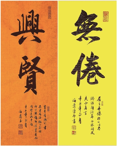 書法是中華優(yōu)秀傳統(tǒng)文化的重要構(gòu)成之一,也是人類文明的瑰寶。葛海鷹對(duì)中國優(yōu)秀傳統(tǒng)文化擁有十分自信的態(tài)度。在他看來,學(xué)習(xí)書法既是個(gè)人的興趣愛好和修身養(yǎng)性良方,也是為傳承和弘揚(yáng)中華優(yōu)秀傳統(tǒng)文化、彰顯人類文明的光輝盡一份力,更是堅(jiān)定我們文化自信的一種具體實(shí)踐。葛海鷹將自己的書齋取名“三忘齋”,即是借用《論語》“發(fā)憤忘食,樂以忘憂,不知老之將至”句意,以激勵(lì)自己不懈努力,追求忘我境界。