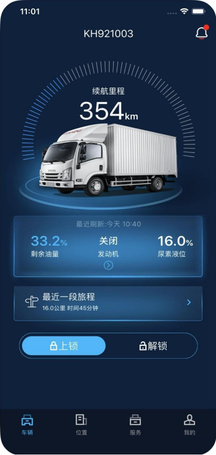 江西五十鈴翼放輕卡搭載的車聯(lián)網(wǎng)系統(tǒng),是江西五十鈴自主開(kāi)發(fā)的車聯(lián)網(wǎng)平臺(tái),搭載先進(jìn)的車聯(lián)網(wǎng)系統(tǒng)及智能設(shè)備,卡友可以通過(guò)手機(jī)上安裝的“江西五十鈴智聯(lián)”app,智能查詢管理車況,分析駕駛行為、優(yōu)化駕駛習(xí)慣;遠(yuǎn)程查詢車輛狀態(tài)信息及診斷,了解車況出行無(wú)憂。如果是企業(yè)用戶,可以通過(guò)車聯(lián)網(wǎng)實(shí)現(xiàn)人、車、貨倉(cāng)的透明化管理,實(shí)時(shí)掌握車隊(duì)運(yùn)營(yíng)情況,提升車隊(duì)運(yùn)營(yíng)效率,整車運(yùn)營(yíng)效率提升30%。另外,還支持防盜及報(bào)警,發(fā)生事故可第一時(shí)間接通緊急救援,遠(yuǎn)程安排。有了車聯(lián)網(wǎng)系統(tǒng),就如同您坐在監(jiān)控室內(nèi),車輛的運(yùn)行情況一目了然,輕松管理、遠(yuǎn)程指揮車輛。
