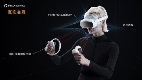 PICO 4 Enterprise憑借強(qiáng)大的真實(shí)交互能力,可以讓用戶能和周圍的環(huán)境產(chǎn)生真實(shí)的互動(dòng)。它采用的6DoF空間定位配合6DoF寬頻觸感手柄,可實(shí)現(xiàn)亞毫米級(jí)定位精度和毫秒級(jí)追蹤速度,提供更加精準(zhǔn)、自由與沉浸的商業(yè)互動(dòng)體驗(yàn)。搭載的彩色透視功能讓用戶在佩戴VR一體機(jī)時(shí)也能夠查看外部實(shí)時(shí)環(huán)境情況,提高安全性。