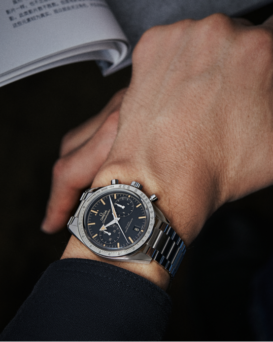 歐米茄超霸’57腕表搭配黑色表盤,拍攝?Chienyun
