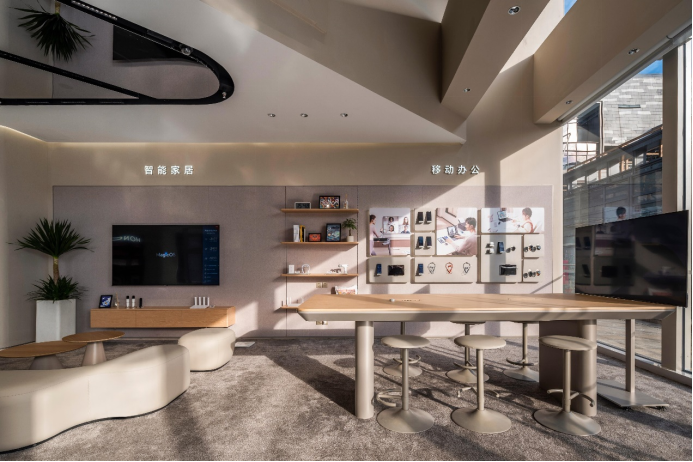 回歸科技本身,榮耀LIFE店(福州東二環(huán)泰禾廣場)匯集了豐富的全場景智能產(chǎn)品體驗。在智能家居區(qū)域,消費者能夠體驗掛燙機、電吹風、電動牙刷等榮耀親選商品,感受智能小家電帶來的便捷科技生活體驗。在全場景體驗區(qū)域,消費者可以在真實的場景中全方位、沉浸式的深度體驗智慧屏、平板等眾多智能產(chǎn)品的互聯(lián)功能。而在行業(yè)領先的天花布光和地面燈帶的照射之下,燈光陰影被消除,消費者的注意力能夠更加聚焦在產(chǎn)品體驗上。同時木紋和香檳銀材質(zhì)的展示臺面通過特殊工藝處理,產(chǎn)生了桌面懸浮感,更進一步提升了消費者在店內(nèi)的停留感受。