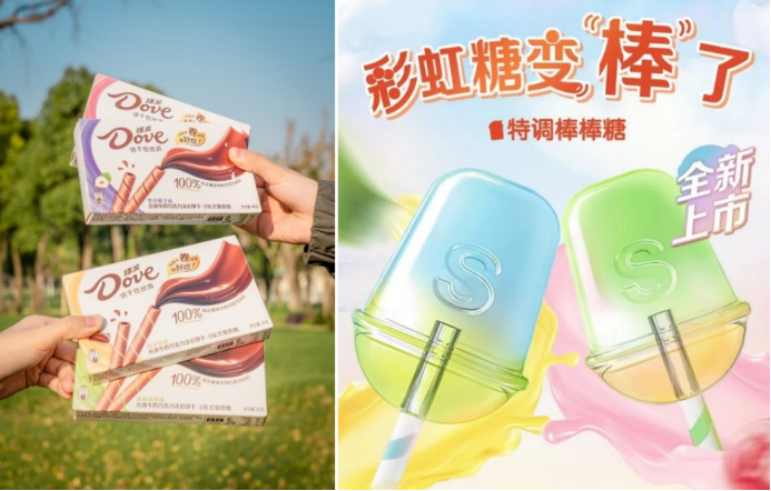 德芙脆卷餅干紙質包裝、彩虹?糖紙棒棒棒糖(左圖來源:上海吃喝玩樂公司)