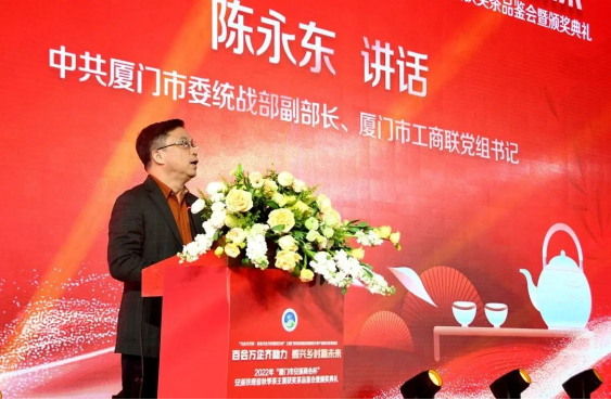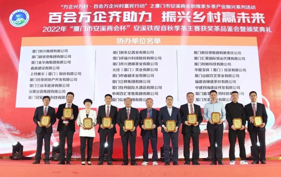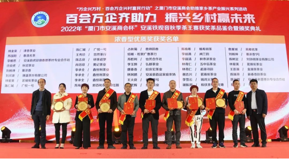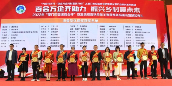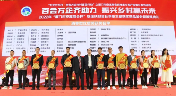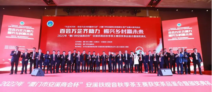 2月24日,由廈門市工商聯(lián)(總商會)、安溪縣人民政府主辦,廈門市安溪商會承辦,中共安溪縣委統(tǒng)戰(zhàn)部、安溪縣茶業(yè)管理委員會辦公室、安溪縣工商聯(lián)協(xié)辦的2022年“廈門市安溪商會杯”安溪鐵觀音秋季茶王賽獲獎茶品鑒會暨頒獎典禮在廈門佰翔五通酒店盛大舉行。本次活動是為了進(jìn)一步落實(shí)廈門市工商聯(lián)和安溪縣人民政府提出的“萬企興萬村·百會萬企興村富民行動”計劃——廈門市安溪商會助推家鄉(xiāng)茶產(chǎn)業(yè)振興活動,也是“廈門企業(yè)家日”配套活動之一。