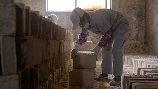 如今,經(jīng)過(guò)一代代四特制曲人的努力,《天工開物》里的制曲工藝得以傳承與發(fā)展,形成了自成一派的特香型大曲酒工藝:以面粉、麥麩、酒糟按一定比例混拌、壓制成型,而后經(jīng)過(guò)長(zhǎng)霉、晾霉、潮火、大火、后火五個(gè)培曲階段以及三次人工翻曲,最終入庫(kù)貯存3-6個(gè)月,形成特殊的曲香味。
