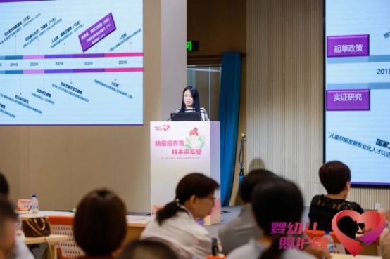 ▲國(guó)家衛(wèi)生健康委婦幼健康司副司長(zhǎng)沈海屏做《兒童早期發(fā)展與嬰幼兒養(yǎng)育照護(hù)》主旨報(bào)告