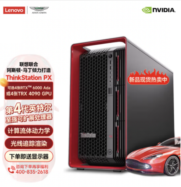史詩級散熱設(shè)計,顛覆性技術(shù)革新!今年3月,聯(lián)想發(fā)布有史以來最具技術(shù)突破性的臺式工作站——ThinkStation PX,全面滿足工程師、創(chuàng)意工作者和數(shù)學(xué)科學(xué)家對強算力、高性能、快速運行的進一步需求。其采用了由聯(lián)想與豪華跑車制造商阿斯頓馬丁共同打造的全新空氣動力學(xué)散熱設(shè)計機箱,為各行各業(yè)高強度工作注入澎湃算力支持。聯(lián)想ThinkStation PX是業(yè)界獨家可以支持兩顆頂級350W至強處理器加四塊300W頂級專業(yè)顯卡的工作站產(chǎn)品,做到了當(dāng)前桌面工作站的性能極致,帶來史詩級澎湃的性能釋放,可以幫助用戶輕松應(yīng)對復(fù)雜工作流。最多可搭載4TB DDR5內(nèi)存,通過PCIe Gen 5高速通道提供超高帶寬,還可提供高效的1850W電源和可選冗余電源。