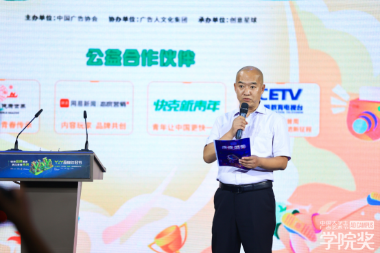 活動現(xiàn)場,第26屆推普周項目負(fù)責(zé)人馬惠玲為同學(xué)們揭曉了最終的獲獎名單,廣告人商盟聯(lián)席主席金國強為獲得榮譽的青年學(xué)子頒發(fā)證書。