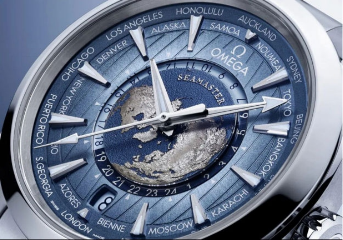 150米這個深度在海洋的層次中屬于照光層。這次歐米茄海馬紀念款在150米的防水區(qū)間,有三款作品。分別是 Aqua Terra 38毫米,41毫米和世界時腕表。表盤淺藍色的漸變層次讓人聯(lián)想到夏日陽光下清澈透明的海水。