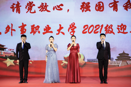 在孫彤宇副校長演講之前,晚會呈現(xiàn)了精彩紛呈的多個節(jié)目。晚會在合唱《大魚》《明天你好》優(yōu)美的歌聲中拉開帷幕,演唱者為五年一貫制2021級新生合唱團,深情的演唱、優(yōu)美的旋律引起了現(xiàn)場觀眾共鳴。配樂詩朗誦《請黨放心 強國有我》讓人們看到祖國新一代對實現(xiàn)強國夢的信心。由我??罩谐藙諏I(yè)學生帶來的《空乘禮儀展示》在活力四射的音樂中上演,俊男靚女著裝整齊,儀態(tài)大方,展示空乘學子的青春風采。來自山東藝術學院的青年歌唱家李章棟傾情演唱《燈火里的中國》,旋律悠揚、緊扣時代,展現(xiàn)了燈火里的繁花似錦和安詳寧靜、奮發(fā)圖強和生生不息。