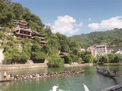 舞陽河,青龍洞,綠水青山看鎮(zhèn)遠(yuǎn)。依托古城國家5A級(jí)旅游景區(qū)等10張國家級(jí)文化旅游“名片”,鎮(zhèn)遠(yuǎn)縣近年來創(chuàng)新體制機(jī)制,聚焦宜居、宜業(yè)、宜游三個(gè)核心功能,持續(xù)開發(fā)境內(nèi)文化資源,豐富旅游業(yè)態(tài),在推進(jìn)“文化名城”“旅游名城”建設(shè)的同時(shí),縣域經(jīng)濟(jì)不斷增長,與之相關(guān)的文旅企業(yè)借勢增長,截至目前,涉旅文化旅游經(jīng)營單位1600余家,旅游綜合收入89.38億元。